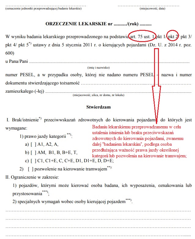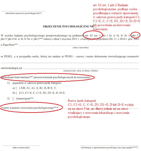Spójrzcie jeszcze jakie punkty powinny być zaznaczone w orzeczeniu psychologicznym i lekarskim, jeśli mowa o przedłużaniu ważności danej kategorii prawa jazdy zawodowego: